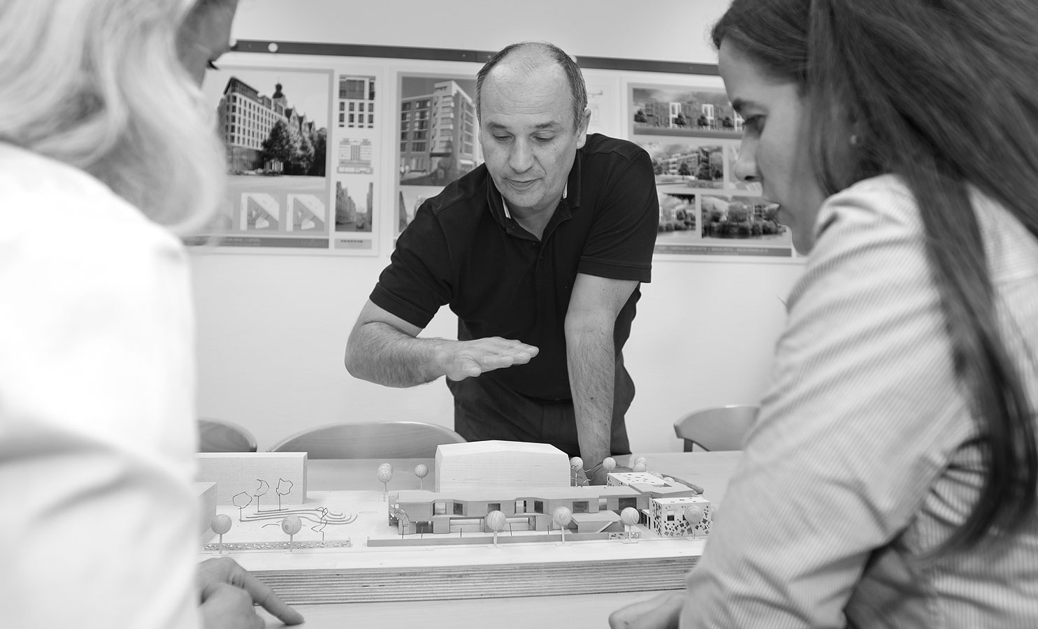 Für das renommierte Architekturbüro Behzadi + Partner setzte dreipunkt die vorhandene Wort-/Bildmarke in neue Proportionen und entwickelte das Corporate Design für unterschiedliche Anwendungsvarianten und Plattformen konsequent weiter. Typografie, Bilder und Farben setzten wir in einen klar definierten Kontext, welcher die Gestaltung der Geschäftsausstattung, Angebotsmappen, Imageanzeigen und -broschüren sowie exklusiver Einladungen vereinheitlicht. Die beiden Sonderfarben HKS 17 und HKS 92 wurden bei der Gestaltung der hochwertigen Drucksachen flächendeckend eingesetzt. Als Feinstpapier für die umfängliche Geschäftsausstattung definierten wir Munkeln Pure aus dem Hause Papyrus. Die ungestrichene Oberfläche des Ausstattungspapiers in einem gelblichen Weißton verleiht den Druckerzeugnissen einen exklusiven und dennoch natürlichen Charakter.
