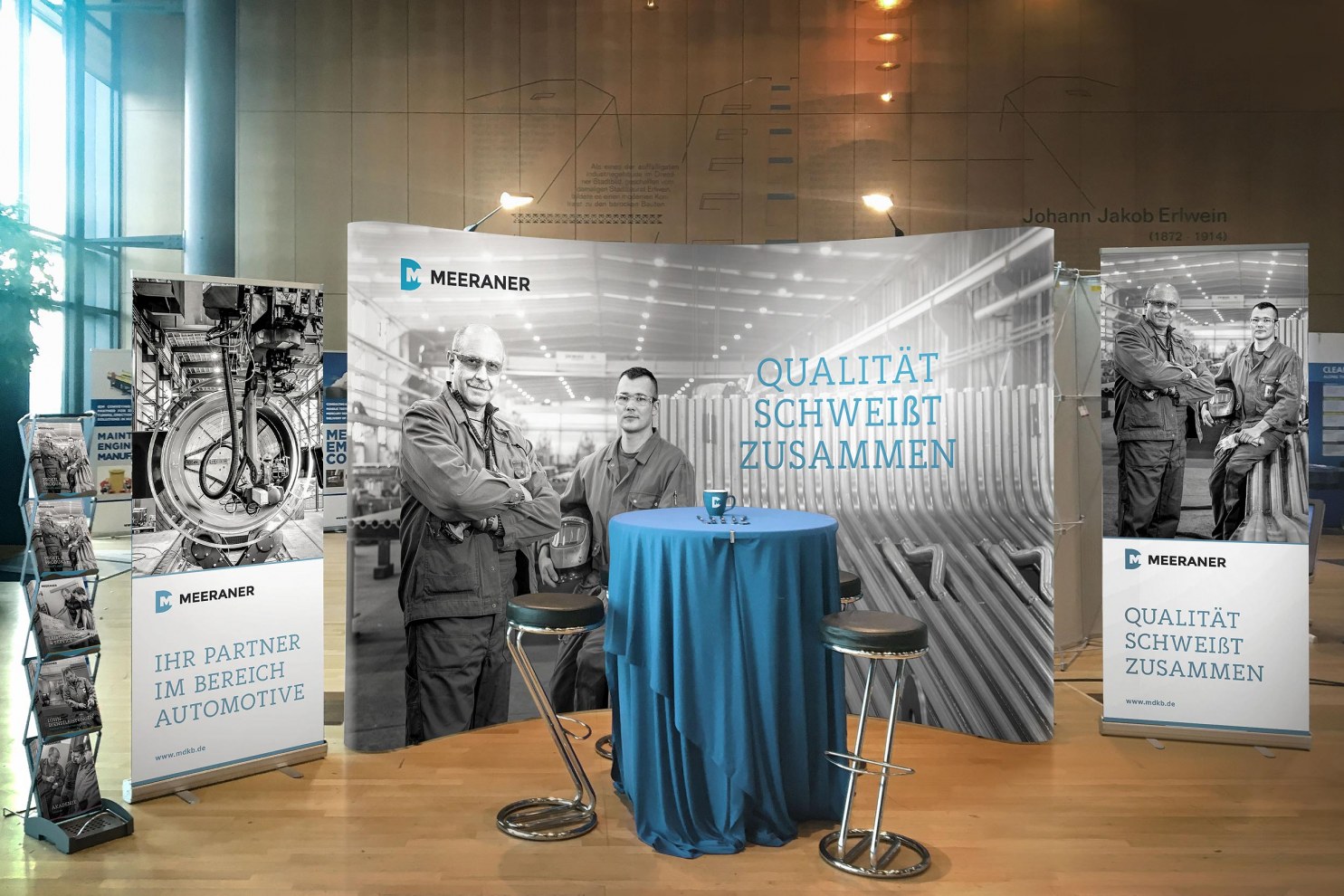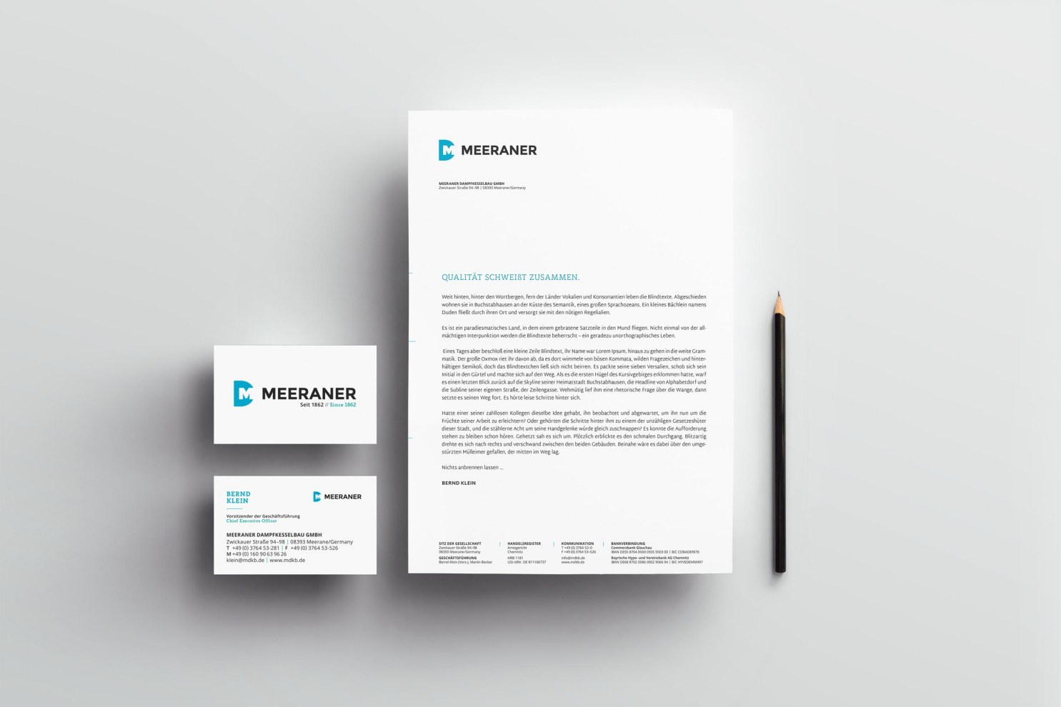 Bewusst entwickelten wir dabei ein neuartiges, eigenständiges Erscheinungsbild, welches die vertrauten Gene der Marke weiter in sich trägt. Dabei wollten wir bewusst eine grafische Trennung zwischen dem bisherigen Auftritt im öffentlichen Raum und der neuen Kampagne erzeugt werden. Die Themen soziale Tradition, Ökologie, Nachhaltigkeit und Persönlichkeit rückten wir dabei in den Fokus unserer Kampagne. Die Idee bestand darin, aus der Meeraner Kesselbau GmbH eine Marke zu schaffen, die sich vorrangig über ihre Historie, Produkte und Mitarbeiter definiert. Alle „Meeraner“ stehen dabei selbst ein für die individuellen Werte des traditionsreichen Unternehmens, welches seine Leistungsfähigkeit bereits in die Welt getragen hat. Sympathisch und persönlich motivieren wir alle Mitarbeiter und neue Zielgruppen, quasi selbst zum „Meeraner“ zu werden und das entstandene Qualitätsdenken mitzutragen. Auf Basis der strategischen Neuausrichtung entstand eine neue Wort-Bildmarke und ein komplett neues Corporate Design. Besonderer Fokus lag dabei auf die Erstellung einer individuellen Webseite mit eigenem CMS-System, verschiedene Broschüren, Flyer, Anzeigen, Wegeleitsystemen und Werbemitteln. Weiterhin setzen wir das neue CD auf einen internationalen Messestand um und entwickelten für das Unternehmen einen hochwertigen Imagefilm.