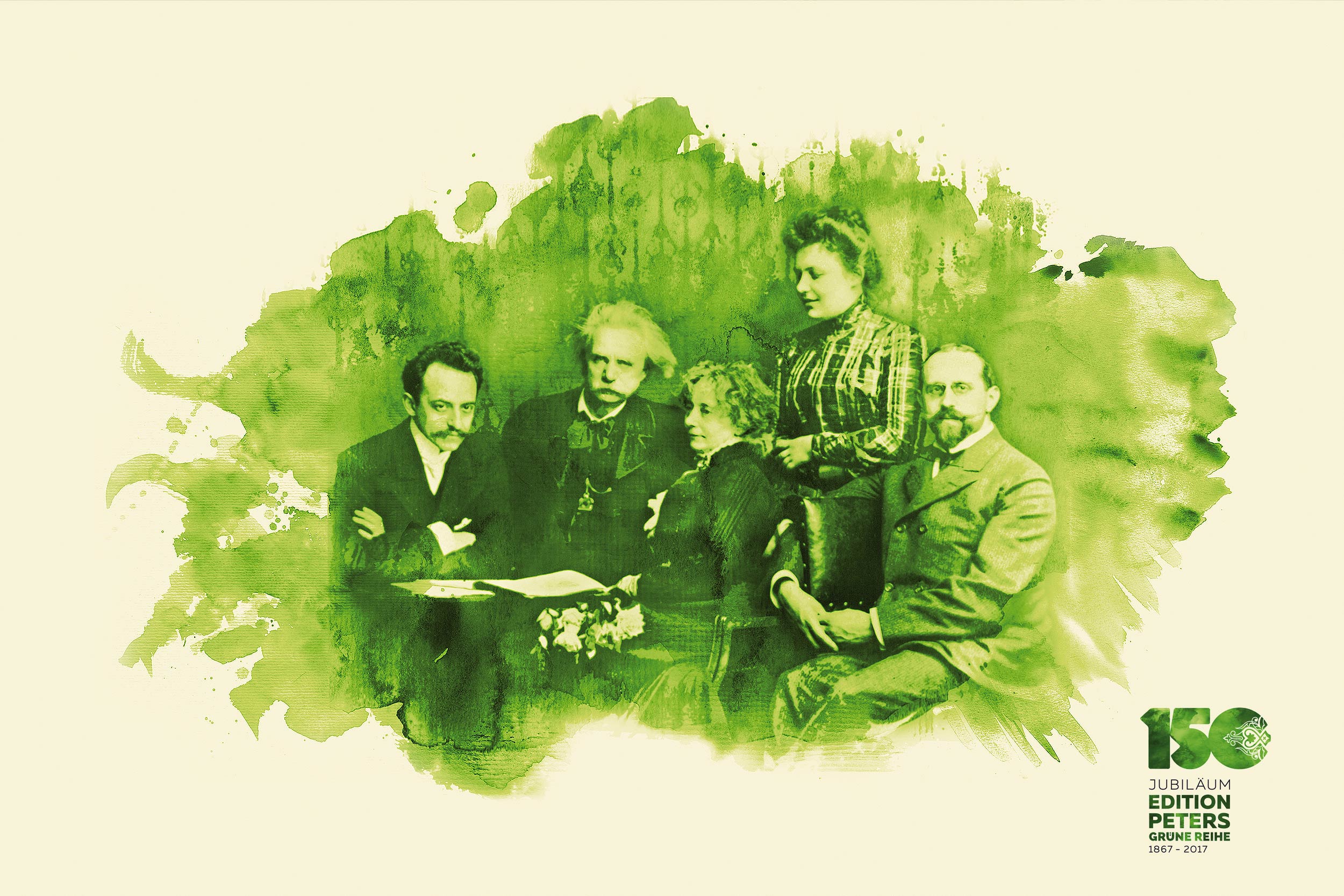 Nach vielen Jahrzehnten in weiter Ferne ist er nun wieder zurück in das Haus seiner musikalischen Träume in Leipzig gezogen. Für dreipunkt war es deshalb eine besondere Ehre, das 150- jährige Jubiläum der lindgrünen Hausmarke „Grüne Reihe“ grafisch in Szene zu setzen. Neben einer ansprechenden Jubiläumsmarke entwickelten wir eine eigene Bildsprache auf Basis historischer Fotos bekannter Komponisten und Gebäude, welche mit grünen Aquarellfarben und digitalen Filtern neu interpretiert wurden.