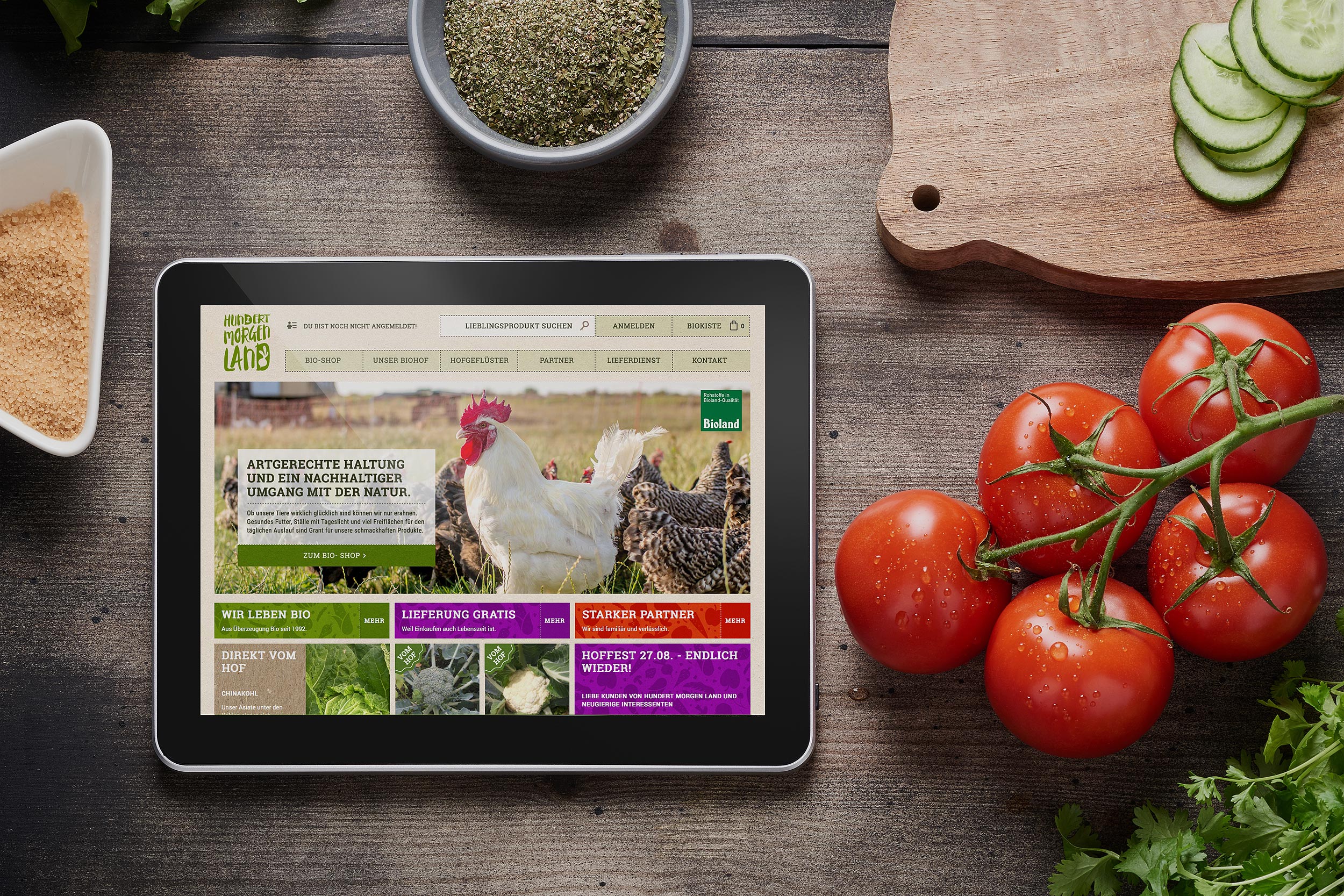 Die fertige Webseite der Marke „Hundert Morgen Land“ mit integriertem Shopsystem erstrahlt nun in unserer eigenen Interpretation von nachhaltigem Markendesign. Neben dem markanten Front-End Bereich werden im Back-End die bisher erfassten manuellen Arbeitsabläufe effizient und automatisiert in eine individuelle Datenbank mit angegliedertem Warenwirtschaftssystem übertragen. Auch der komplexe unternehmerische Vorgang, bestehend aus Lagerverwaltung, Lieferungs- und Kundenmanagement, wurde komplett neu und funktional programmiert. Mit Neugier, Appetit und entfachter Lust an gesunder Ernährung verfolgen wir ab sofort die weiteren Wege der Familie Müller.