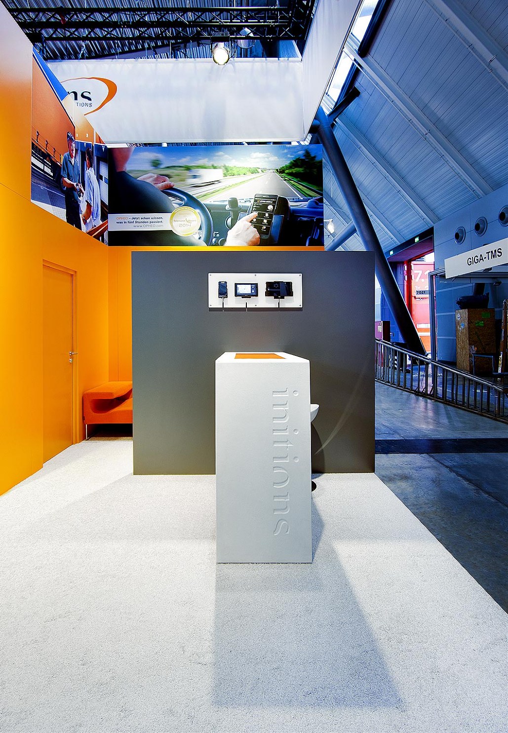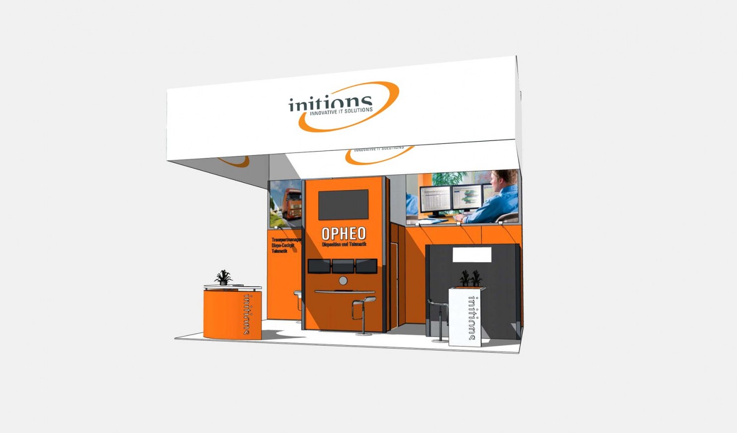 Für die aktuelle Ausgabe der Messe "Transport und Logistik" in Stuttgart entwickelte dreipunkt ein neues Standkonzept für das Hamburger Unternehmen initions AG.