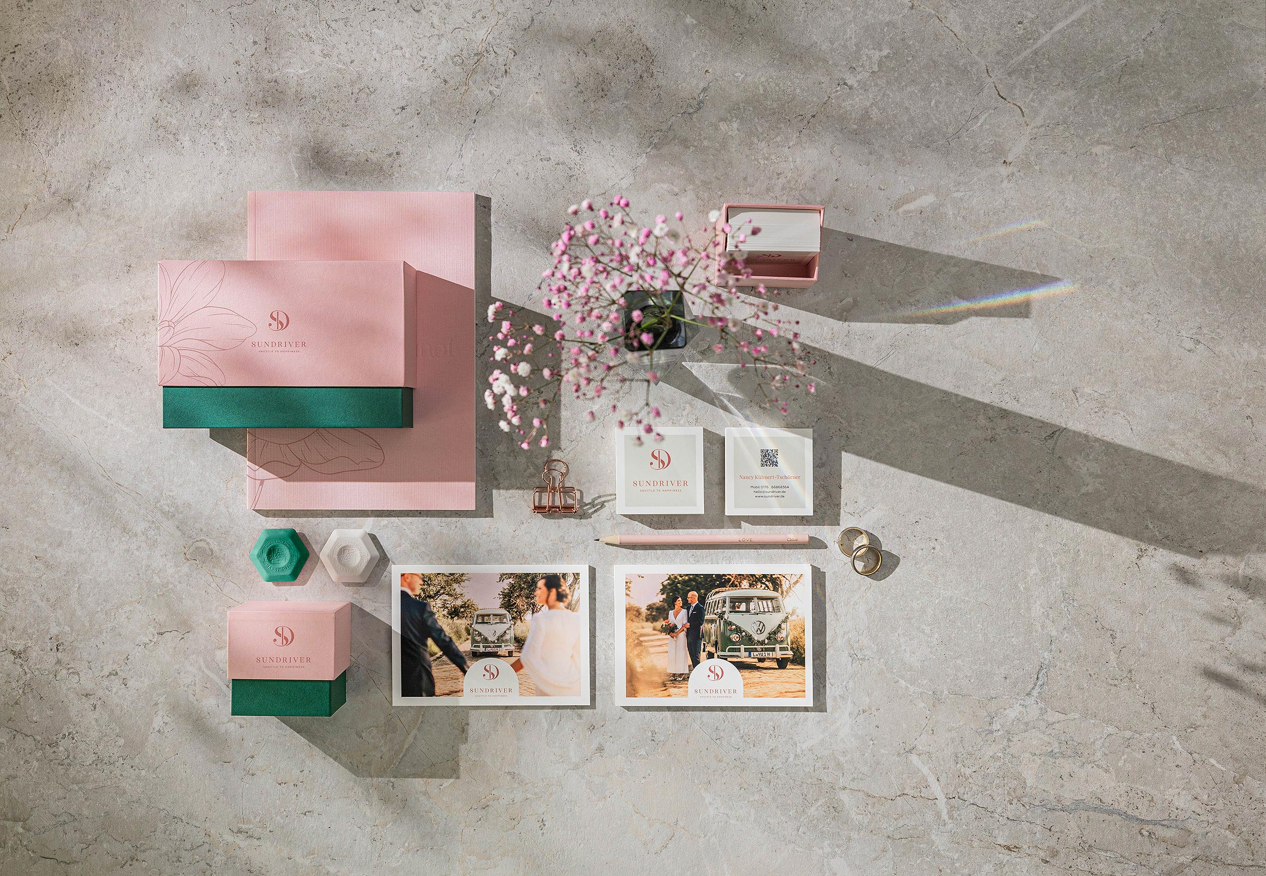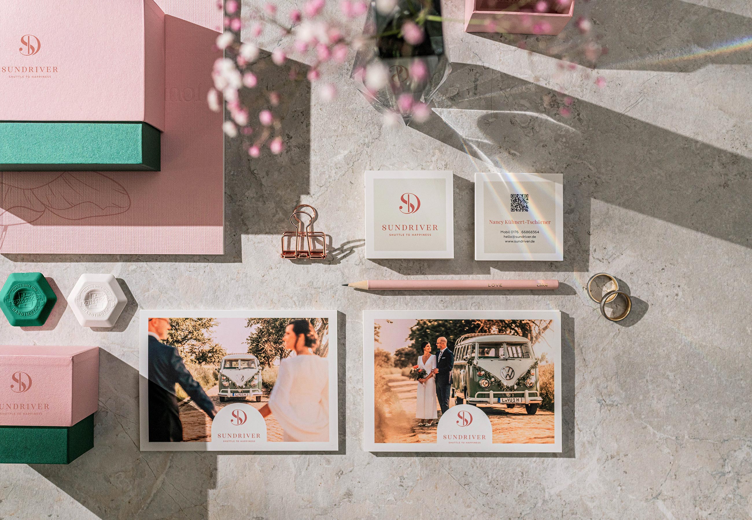 Nancy und ihr cooler Bulli haben uns sofort verzaubert. Vom ersten Treffen bis zur finalen Umsetzung der Drucksachen und Webseite war es eine wahre Freude, den Start des kleinen Unternehmens als Hochzeitschauffeur anzuschieben. Ein feminines und fein abgestimmtes Farbkonzept in metallischen Kupfertönen, Rosé und Grüntönen auf Naturpapier unterstreicht den individuellen Stil der Inhaberin und die Qualität ihrer Arbeit.