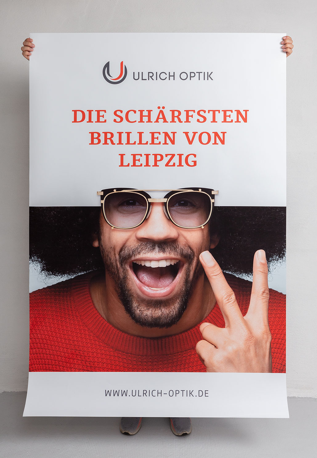Nach einem Hilferuf der Inhaberin des Leipziger Optikerfachgeschäfts Ulrich Optik warfen wir im Sommer 2013 einen scharfen Blick auf das bestehende Erscheinungsbild des Unternehmens. Schnell war klar, dass eine Rundumsanierung sinnvoll wäre. Nach intensivem Briefing präsentierten wir als Erstes eine neue Wort-/Bildmarke. Neben einer runden Stanzung der neu gedruckten Visitenkarten fokussierte sich der Blick auf die neue zweifarbige Geschäftsausstattung. Ebenso erstellten wir eine funktionale Internetseite mit eigenem CMS zur leichteren Pflege der relevanten Inhalte.