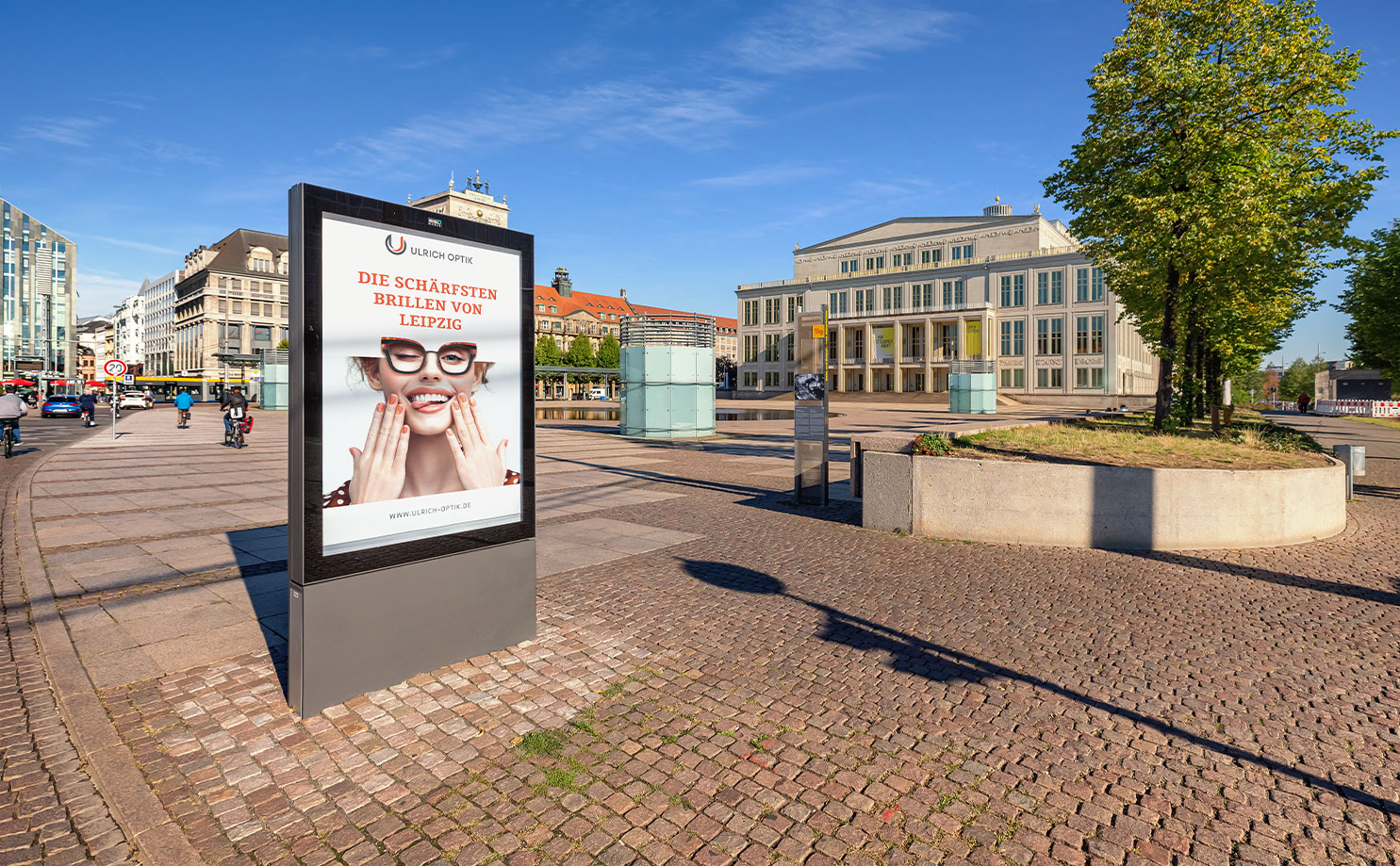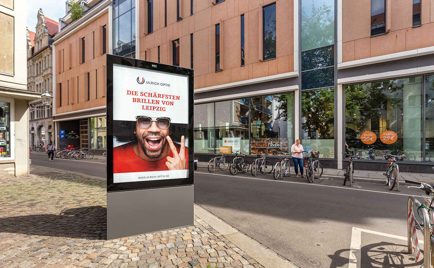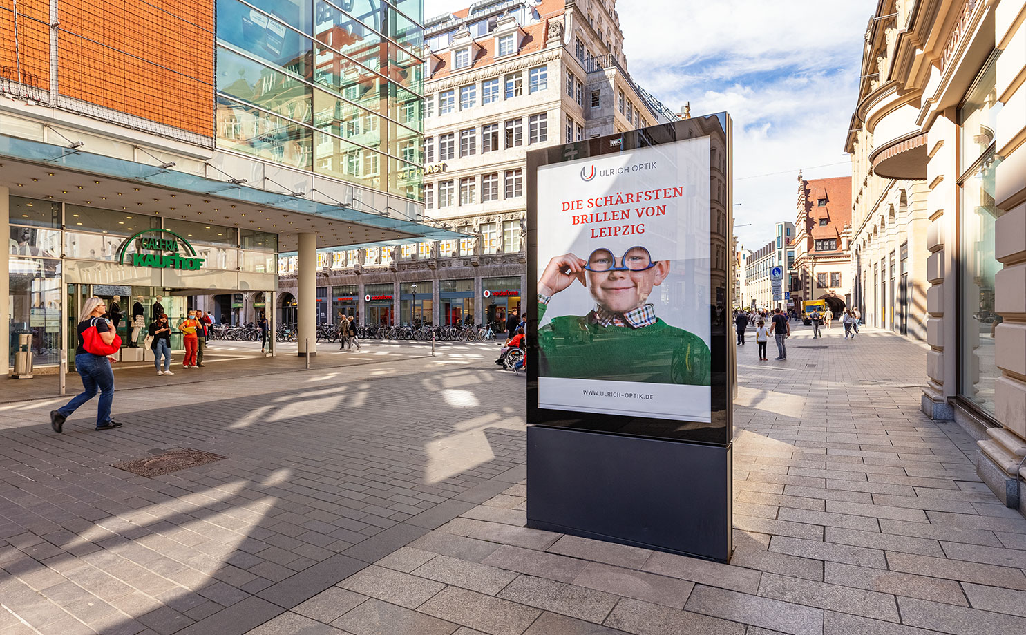 Nach erfolgter Erstbehandlung entstanden ergänzend diverse Werbemittel wie Anzeigen, Folder und Kartonagen mit partieller Veredelung. Mit der im Spätsommer 2020 durchgeführten Out-of-Home-Kampagne wagten wir eine weitere Behandlung zur Steigerung der Reichweite: Wir präsentierten eine Auswahl der schärfsten Brillen Leipzigs inmitten der Innenstadt auf über 25 Außenwerbeträgern der RBL Media GmbH. Diese begleiteten wir parallel mit einer erweiterten Social-Media-Kampagne auf den Instagram- und Facebook-Kanälen unseres Kunden.